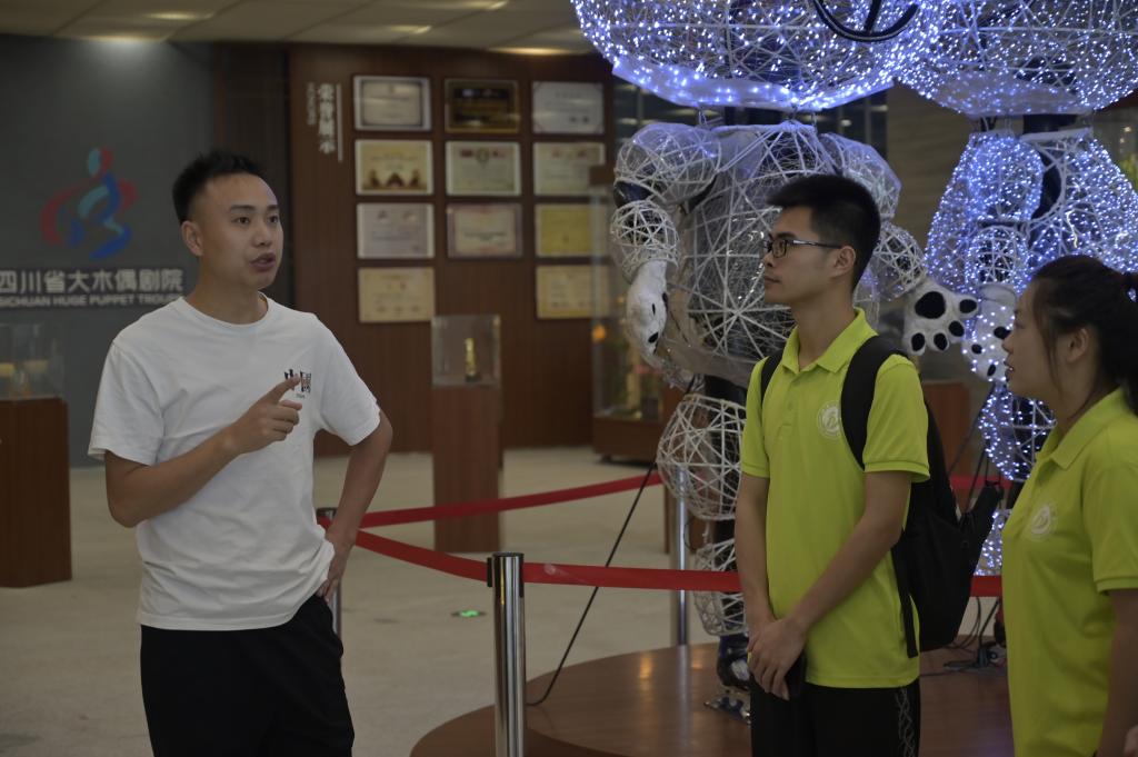 实践队在南充市川北大剧院副院长李东的带领下参观并观看了大木偶的演出、学习了木偶制作技艺。在与李东的亲切交流中,实践队成员们就非遗文化的保护、传承与发展等问题展开了深入探讨。李东以其丰富的经验和深厚的文化底蕴,为实践队成员们上了生动的一课。他鼓励大家不仅要成为中华优秀非遗文化的见证者,更要成为积极的传播者和实践者,用青春的力量为社会贡献自己的一份力量。