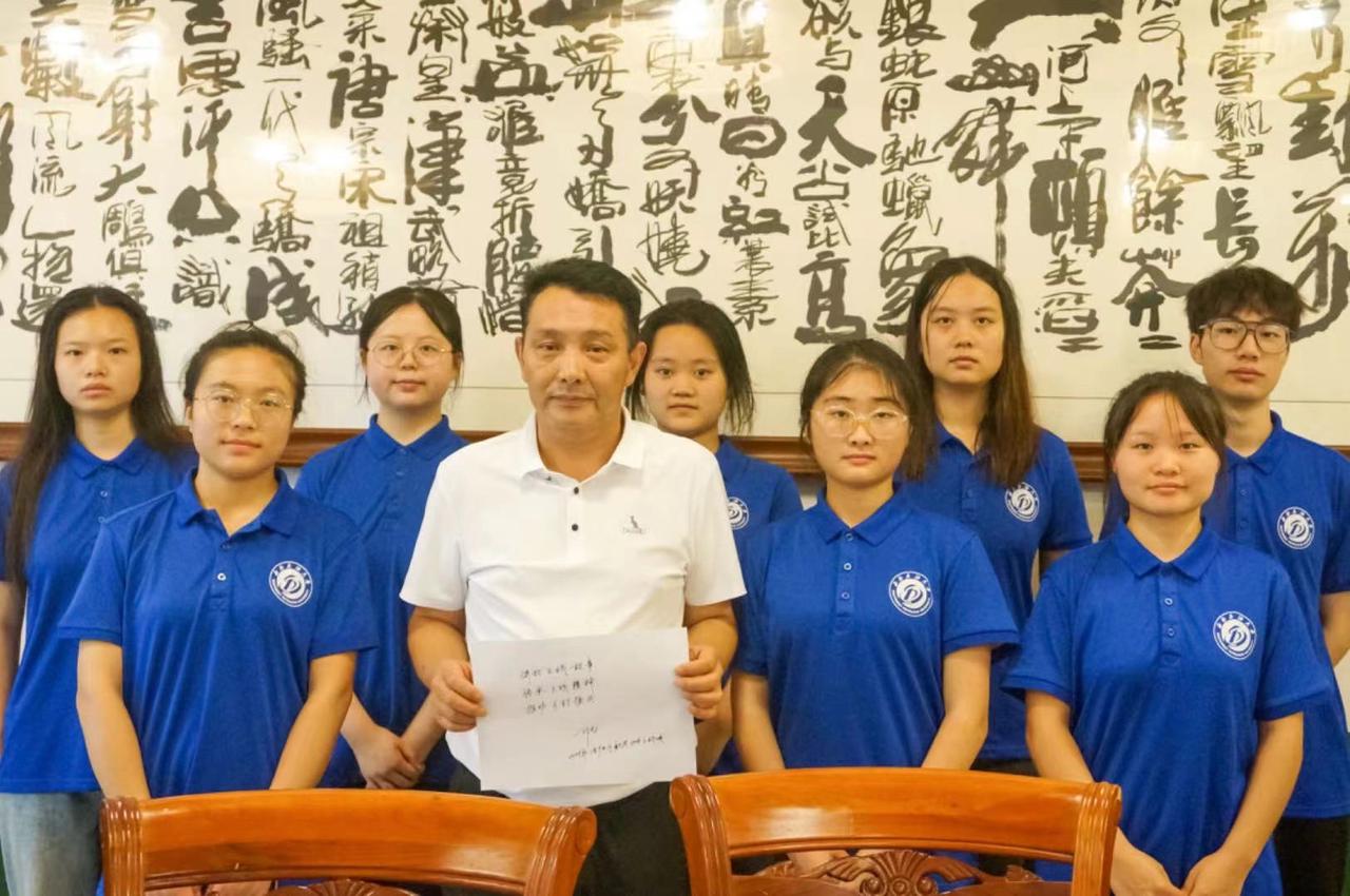 活动过程中,实践队来到会议室,和中国三线研究协会常务理事邓龙老师进行交流。老师讲述了他带领当地村民重建三五三六军工旧址的艰难历程以此勉励实践队,并写下题词:讲好三线故事,传承三线精神,促进乡村振兴。实践队成员表示,要努力成为老师所期盼的国之栋梁,成为堪当民族复兴大任的时代新人。