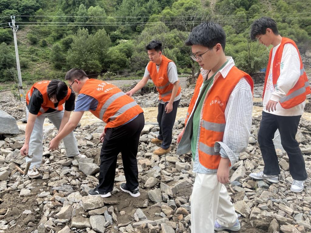 图为实践队灾后清扫