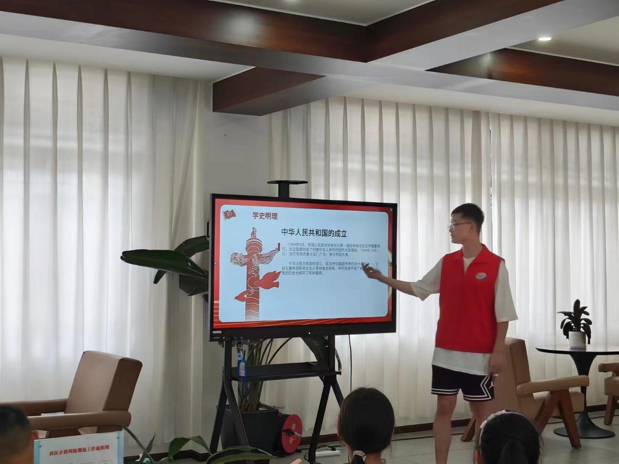 图为志愿者宣讲爱国主义课件