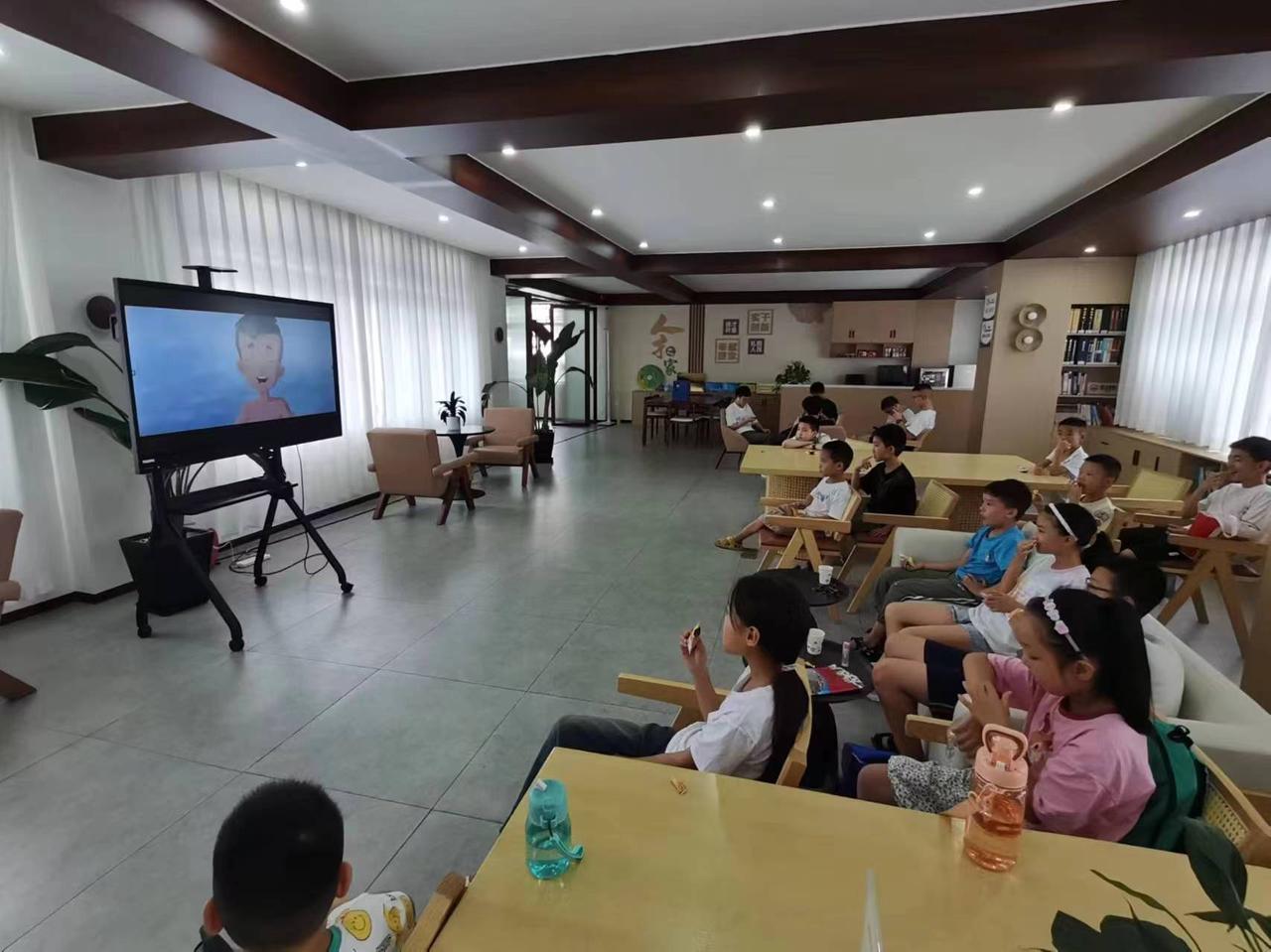图为孩子们观看爱国主义影片