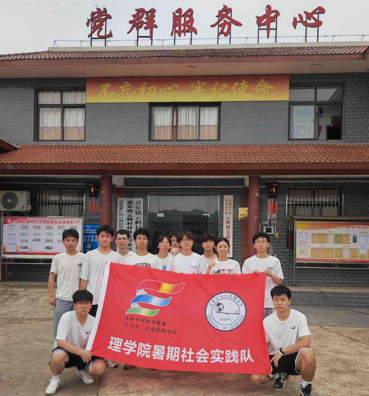 图为实践队员们于云鹤村村公所处合照