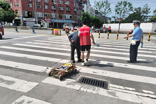 图为分发交通安全宣传单