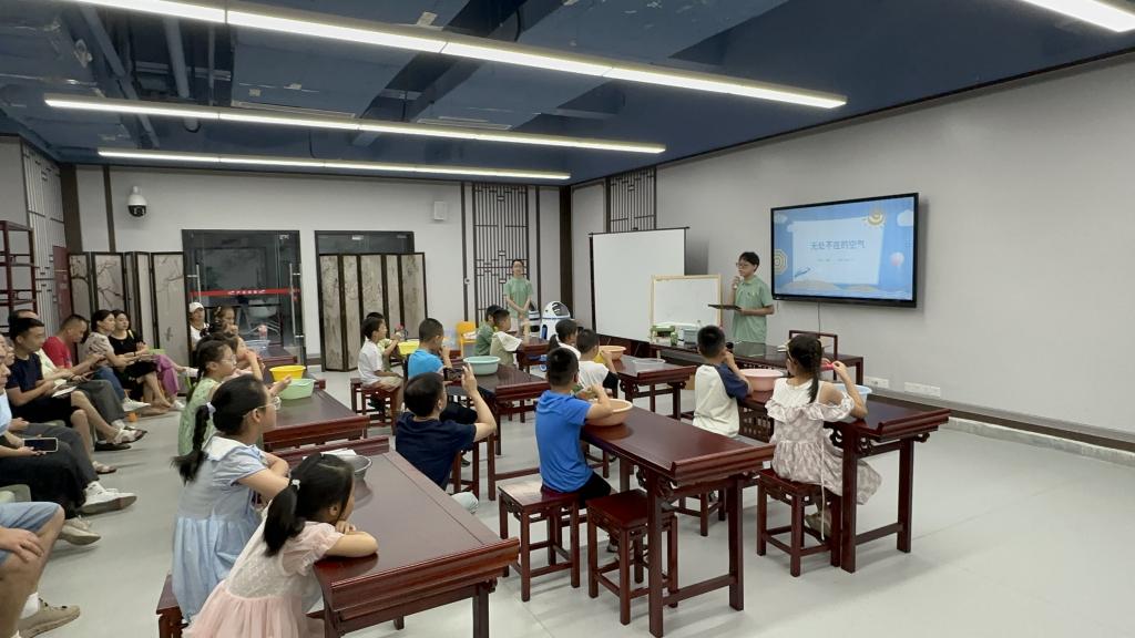 为了激发青少年对科学探索的兴趣,培养他们对自然现象的好奇心与探索精神,7月13日,童心港湾汲汲知新语暑期社会实践队队员前往南充市图书馆,携手数十名小学生及其家长,共同开展了一场以“无处不在的空气”为主题的科普宣讲活动。