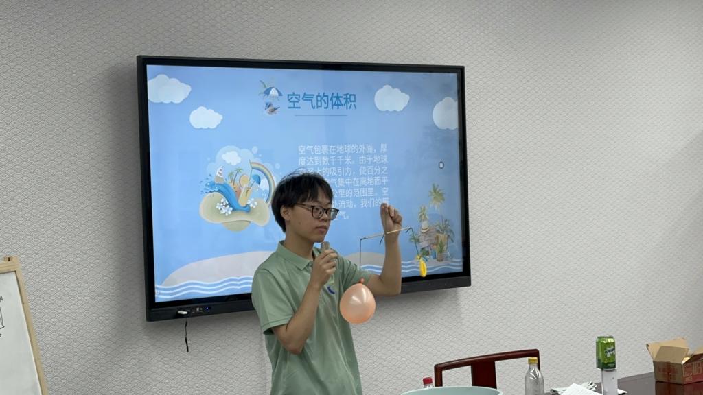 当天志愿者通过简单易懂的实验展示了与大气压强有关的经典现象。志愿者们还组织了互动问答环节,鼓励小朋友们分享自己的实验感悟以及学到的知识。大家积极发言,或感叹于空气的神奇,或则提出了更多关于空气的疑问,现场气氛热烈而活跃。