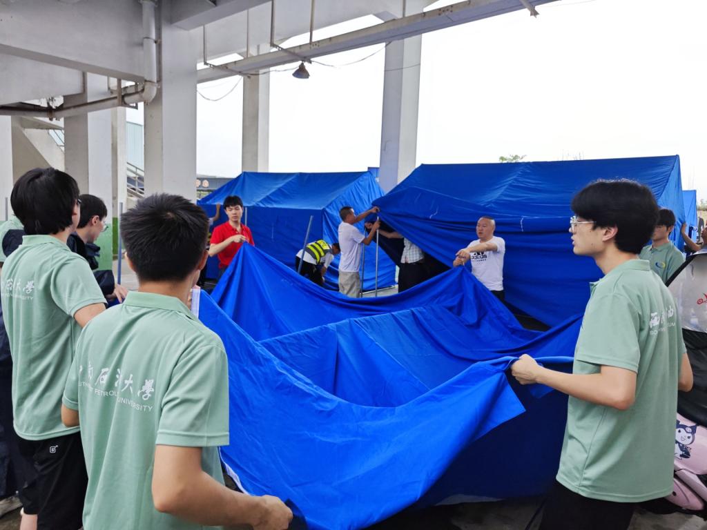 活动伊始,工作人员介绍了工作内容和要求,并同队员对菜市商铺进行了初步的走访,随后队员们统计商铺的营业情况并绘制了菜市商铺的平面图。紧接着,队员们在工作人员的带领下为7月10日开展的地震暨防汛综合应急演练搭建帐篷。 细雨并未浇灭队员们的工作热情,每个人都全身心投入到工作当中。