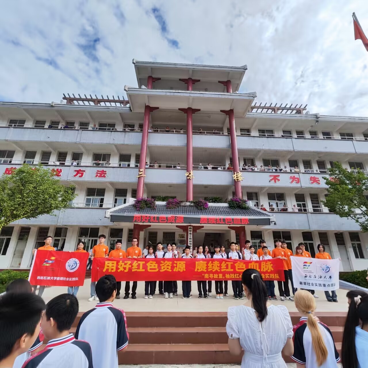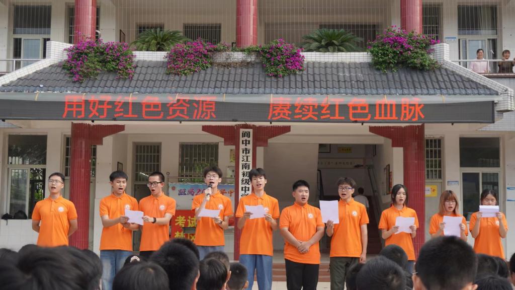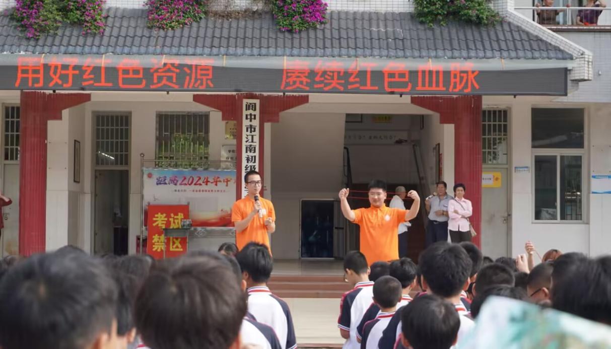 【红色行动】为传递红色力量,弘扬红色精神,“南寻故里,柚践红心”暑期社会实践队于7月11日早走进阆中市江南中学,面向500余名学生开展了“用好红色资源,赓续红色血脉”主题宣讲活动,实践队成员和学生们在红色文化的熏陶下,共同成长,携手前行,以实际行动践行着红色精神的传承与发展。为学习红色文化,传承红色基因,实践队怀揣着敬畏之心走进阆中市烈士纪念园红色教育基地,感人至深的故事和红色精神将带回队员的学习和生活中,将红色基因融入血脉,激励队员们不断前进。