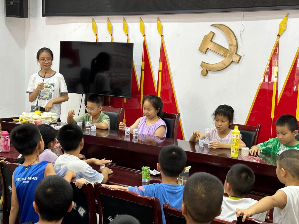 首先,为减轻小朋友们的心理防备,志愿者们提前到达场地进行布置,精心准备好一场“破冰班会”,课堂上气氛活跃。活动通过合作的形式,拉进小朋友们与志愿者的距离,为后期活动的开展奠定基础。随后,为贯彻科技强国战略,志愿者们借助线上线下相结合的方式,向小朋友们播放并讲解科技发展视频,并亲自示范科学小实验。在确保安全的前提下,指引小朋友们亲自动手操作,从中获得实践经验,培养他们观察、思考、分析和解决问题的能力。