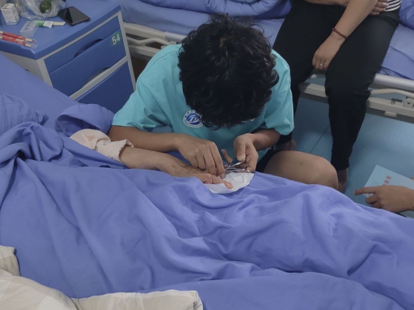 活动伊始,队员们在医护人员带领下了解当日流程,医护人员向队员们详细讲解了老人的普遍病情状况,并带领队员们探访老人,了解他们的生活需求和健康状况。同时,他们一对一向老人们普及高血压、糖尿病以及老年痴呆等相关注意事项。接着,队员们为老人修剪指甲、帮助翻身、搀扶走路,和老人们交流、谈心,了解每一位老人的病因和病情,并在医护人员的帮助下为老人们开展了康复治疗讲解,结合每位老人具体情况,给出了最合理的疗养方案。