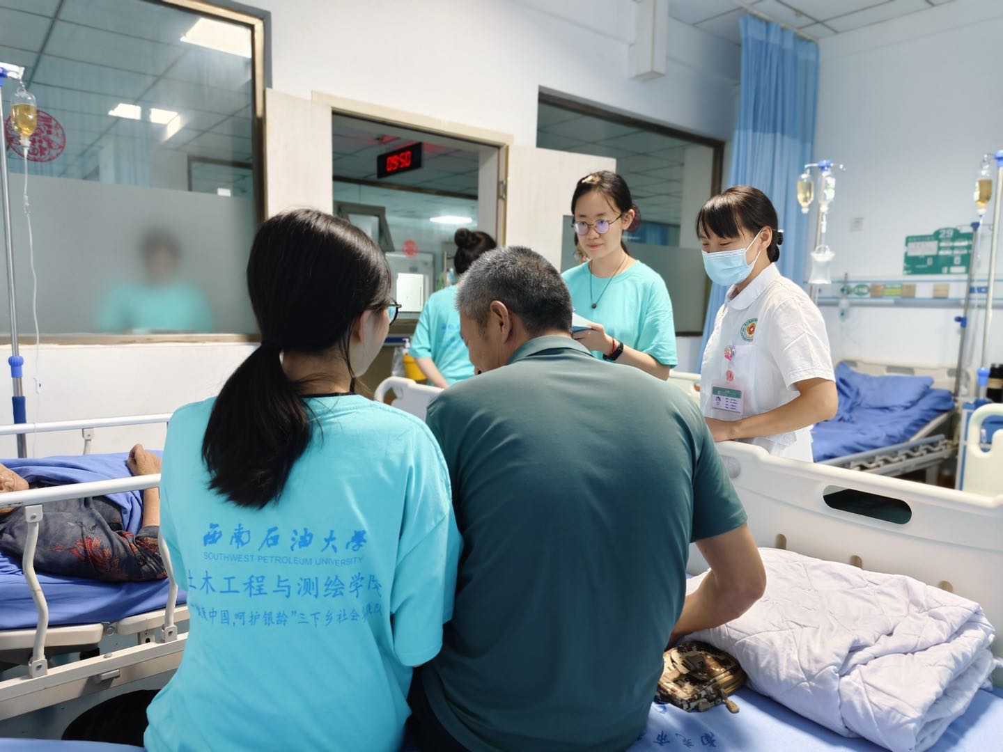 为传递温暖,给患有慢性病的老年患者提供实际帮助,共同构筑以预防为主的社会健康防线,土木工程与测绘学院“健康中国,呵护银龄”实践队于7月9日在南充第二人民医院开展志愿服务活动,为慢性病患者带去关心与支持,弘扬社会正能量。