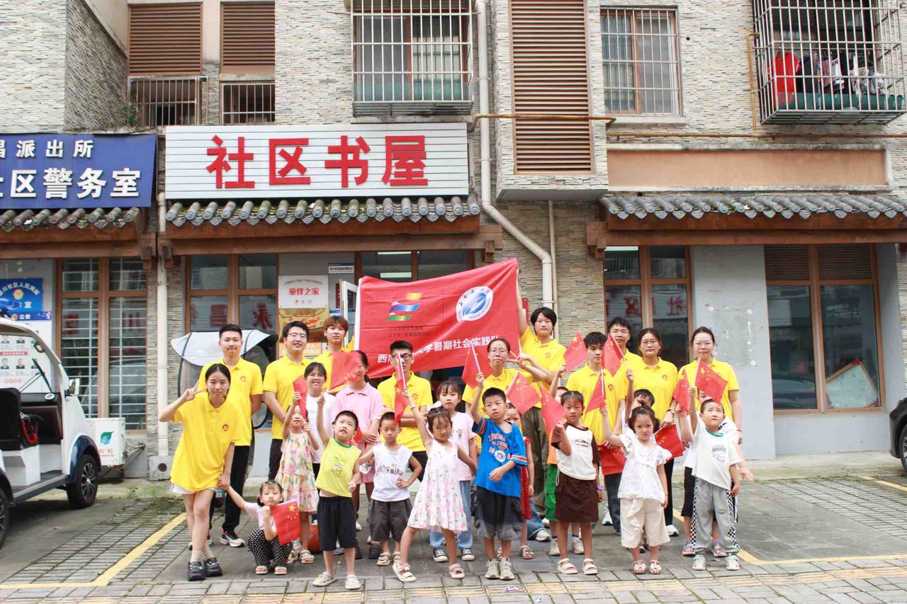 活动开始,实践队员从普通话推广和民族知识讲解两方面展开,向小朋友们讲述普通话的由来、运用。同时介绍各民族的服饰之美、独特文化等,让他们感受到不同民族文化的魅力。活动过程穿插“民族知识问答”和“民族文化猜猜看”等互动环节,以此来增强小朋友们的兴趣。活动结束时,实践队员与小朋友们合唱《爱我中华》,共同挥舞国旗。