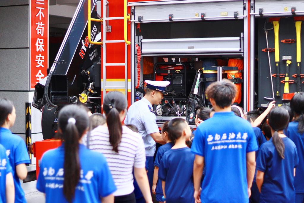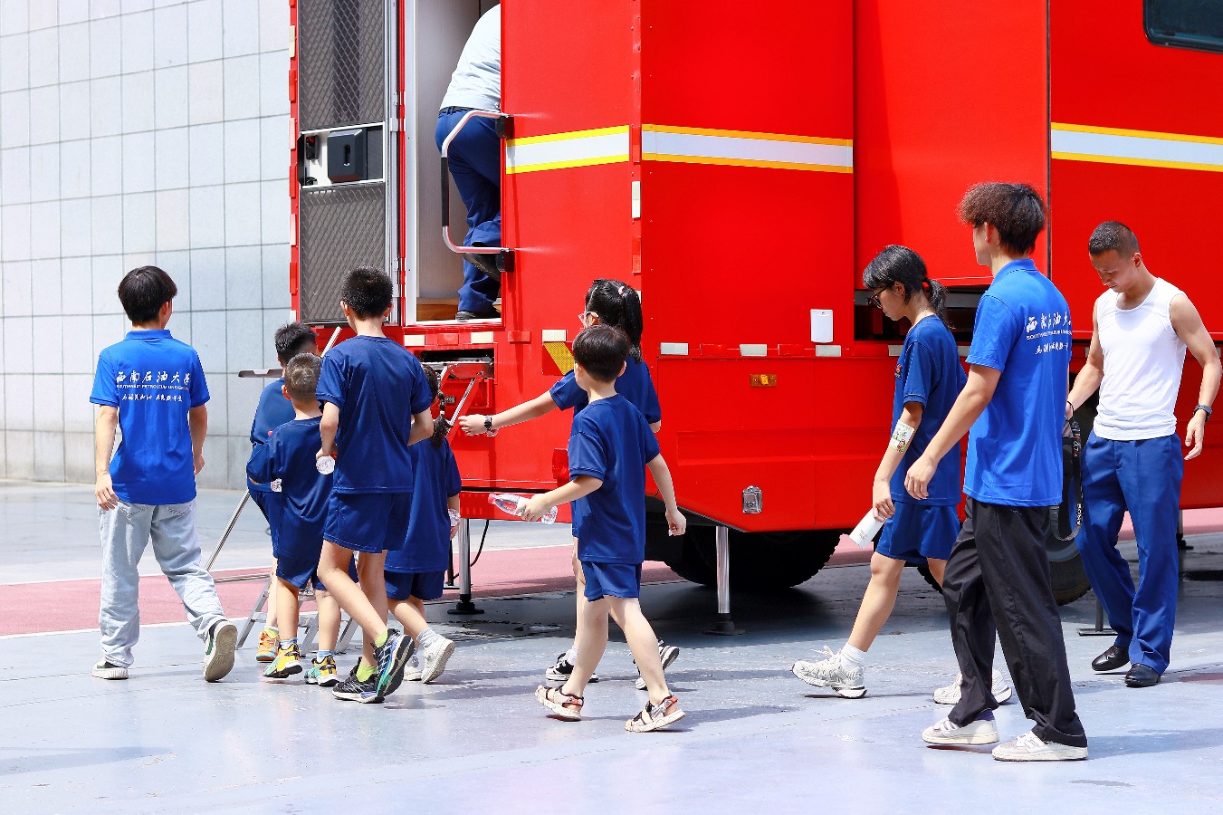 “柚护蓝焰,童梦成长”暑期社会实践队走进南充市消防救援支队开展“小小消防员”暑期夏令营活动,通过开展“看、学、玩、想、悟”等多元素宣传体验活动,达到“教育一个孩子、带动一个家庭、覆盖整个社会”的良好效应。依托消防站、应急消防科普教育基地等场所,组织小朋友零距离体验消防,通过理论讲解、现场体验、参观消防车等方式,送上了“消防安全大餐”。同时,组织观看案例警示,学习逃生技能,开展火情处置、逃生自救等体验,将消防安全教育延伸至家庭,筑牢成长路上的安全墙。在夏令营学会使用灭火器的周柏宇激动地说道:“在这里我学习到了许多消防知识,并且更加的了解消防员这份职业。消防安全人人有责,我们要更加安全地用火用电,远离火灾,远离危险。”