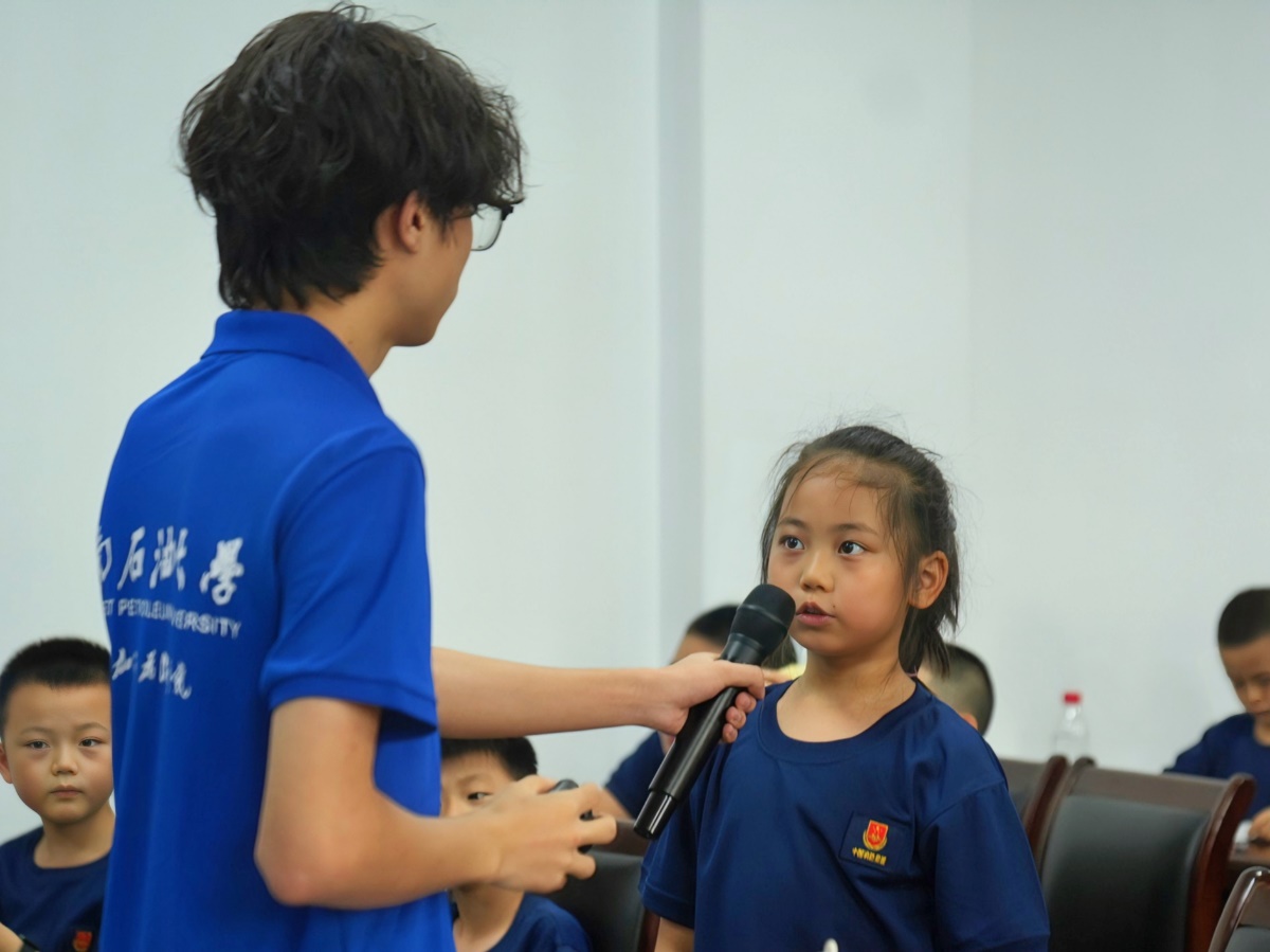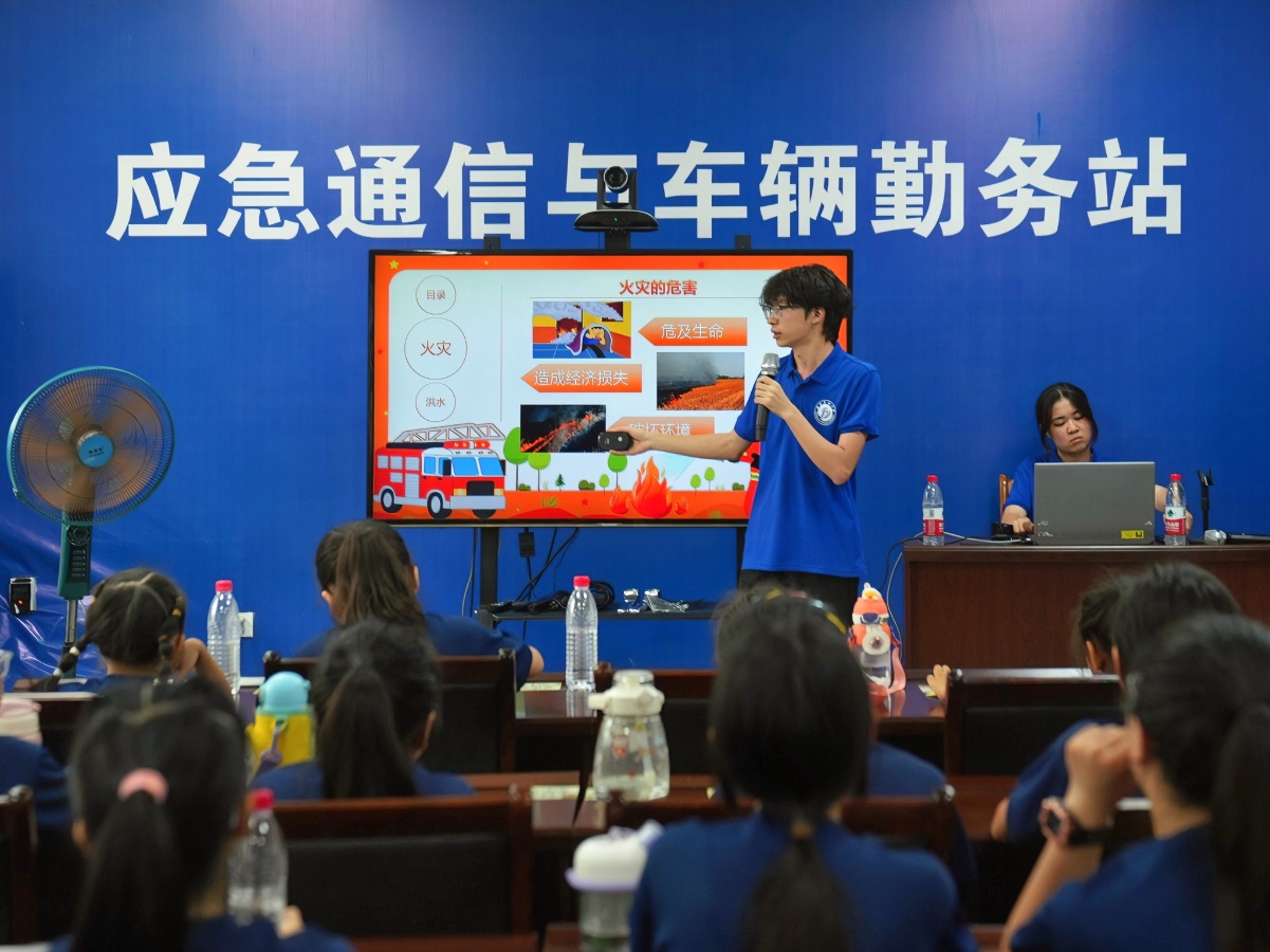 在夏令营,小朋友们在了解消防的同时,也学习到了许多消防知识。通过动画与小剧场,实践队员们生动展示了火灾中的紧急状况,逐一讲解有效应对措施,增强小朋友们的应急反应能力,提醒小朋友们遇到危险时如何自救。现场还进行抢答环节,“我来!我来!这题我会!”小朋友们都争相抢答,十分投入,不时有笑声和掌声响起,表现优秀的小朋友还得到了消防员叔叔奖励的“消防熊”玩偶。