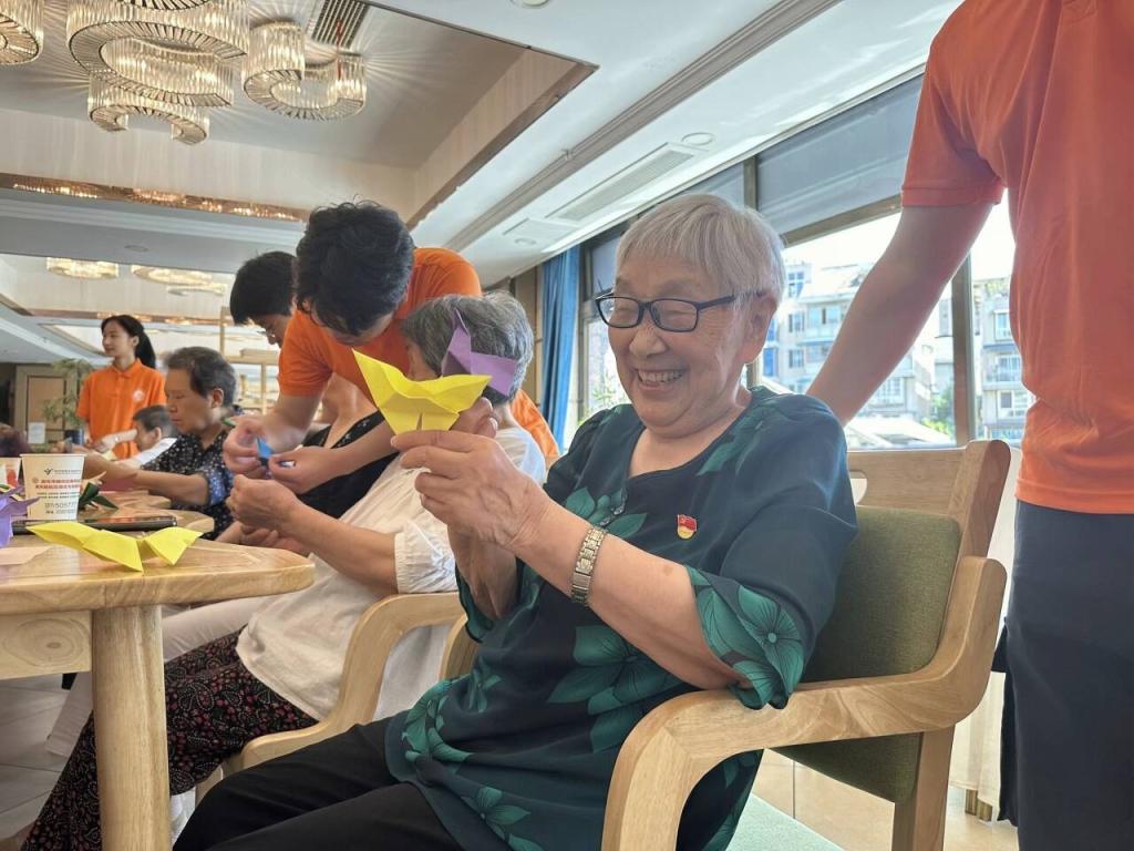 活动伊始,队员们首先向老人介绍了折纸的文化起源和基本技巧,随后详细讲解如何制作折纸作品。在制作过程中,团队成员分组指导老人,从简单的蝴蝶、纸鹤到复杂的动物和花卉,每一位老人都专心致志。折纸环节结束后,老人们纷纷展示自己的成果,并分享自己的活动感受,脸上洋溢着自豪和喜悦。在与老人交流过程中,实践团队提出了许多关于非遗传承和创新的问题。大家一起探讨非遗如何适应现代社会的变化,如何在新的时代背景下焕发新生。老人以自己的经验和见解,为实践团队解答了这些问题,并鼓励青少年积极参与到非遗的传承和保护工作中来。老人表示,这次活动不仅让他们学习到折纸文化,也让他们感受到了社会的温暖和关怀。服务中心相关负责人为实践团队颁发荣誉证书,并表示今后将长期与实践队合作,为老人带来更多创意活动。