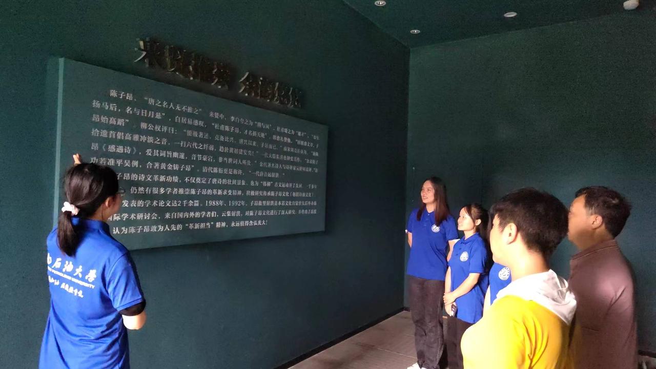 活动伊始,实践队在陈子昂生平展馆观看影片,感受他孤寂却又精彩的一生。随后,队友们游览了文宗苑中的伯玉轩、唐音馆、谏诤厅和文宗堂等,与参观者交流分享心得,弘扬先贤精髓。在乡村振兴示范村双江村,实践队以子昂衣钵文宗苑为锚点,围绕农旅融合主题,实地考察了当地的农业资源和旅游资源,队友们致力于将二者有机结合方法的探讨,希望为推动乡村经济的发展贡献力量。