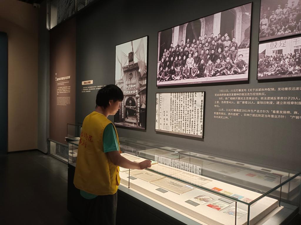 在博物馆工作人员的引导下,实践队成员们参观了南充博物馆的常设展览。从远古时代古老的动物化石,到新石器时代粗犷的原始工具,再到各个朝代的独特工艺制品,以及近代以来包含精神火种的战争遗物,每一件展品都承载着厚重的历史记忆。队员们通过聆听讲解,对南充乃至整个川北地区的历史文化有了更加深入的了解。此外,他们也进行了一系列志愿服务,诸如引导游客、解答疑问、防止小孩损坏文物、整理物品等。在活动的尾声,队员们分享了参观心得,探讨文化传承的重要性,共同为文化的弘扬出谋划策。