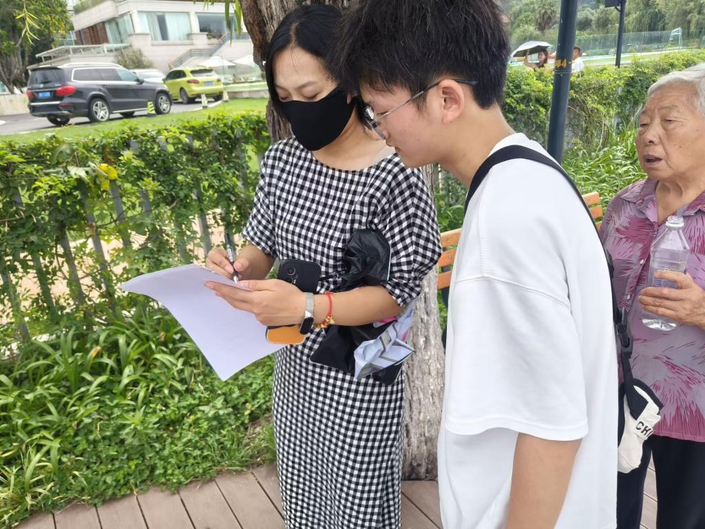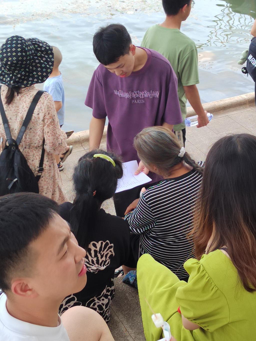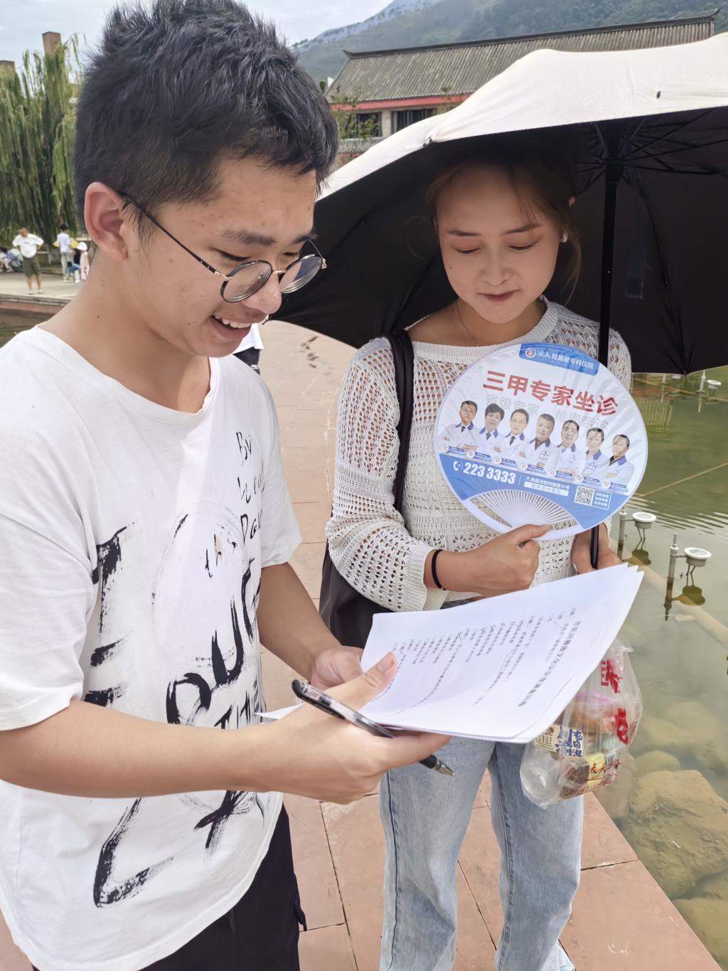 图为到邛海边中年人进行彝文化了解度的问卷调查