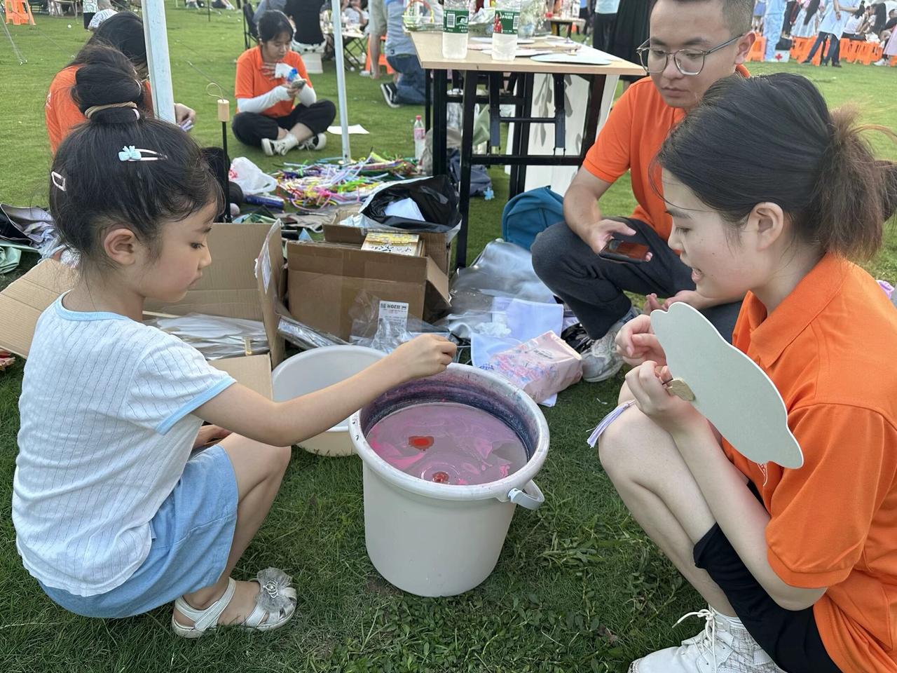墨香绘梦团队身着统一的队服,手持精美的漆扇样品,满怀激情地开始了他们的非遗传承推广活动。活动伊始,他们精心布置了漆扇制作地点,桌子上错落有致地摆放着各式各样的漆扇,从古朴典雅的传统款式到现代创新的设计,每一把都散发着独特的魅力,吸引着过往游客的目光。他们利用展板、海报和现场讲解,向游客们详细介绍漆扇的历史渊源、制作工艺和文化意义,让更多人了解这项宝贵的非物质文化遗产。为了增强互动性和趣味性,他们还特别设置了漆扇制作体验区。在志愿者的指导下,小朋友们和大朋友们纷纷拿起扇子和工具,亲手体验漆扇制作的乐趣。从选材、上漆到绘画,每一步都充满了挑战与惊喜。当看到自己亲手绘制的漆扇逐渐成形,那份成就感和自豪感溢于言表。