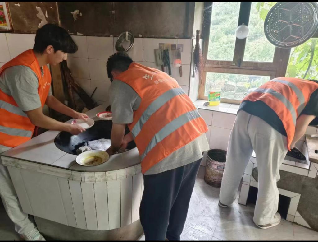 图为队员们为村民洗碗