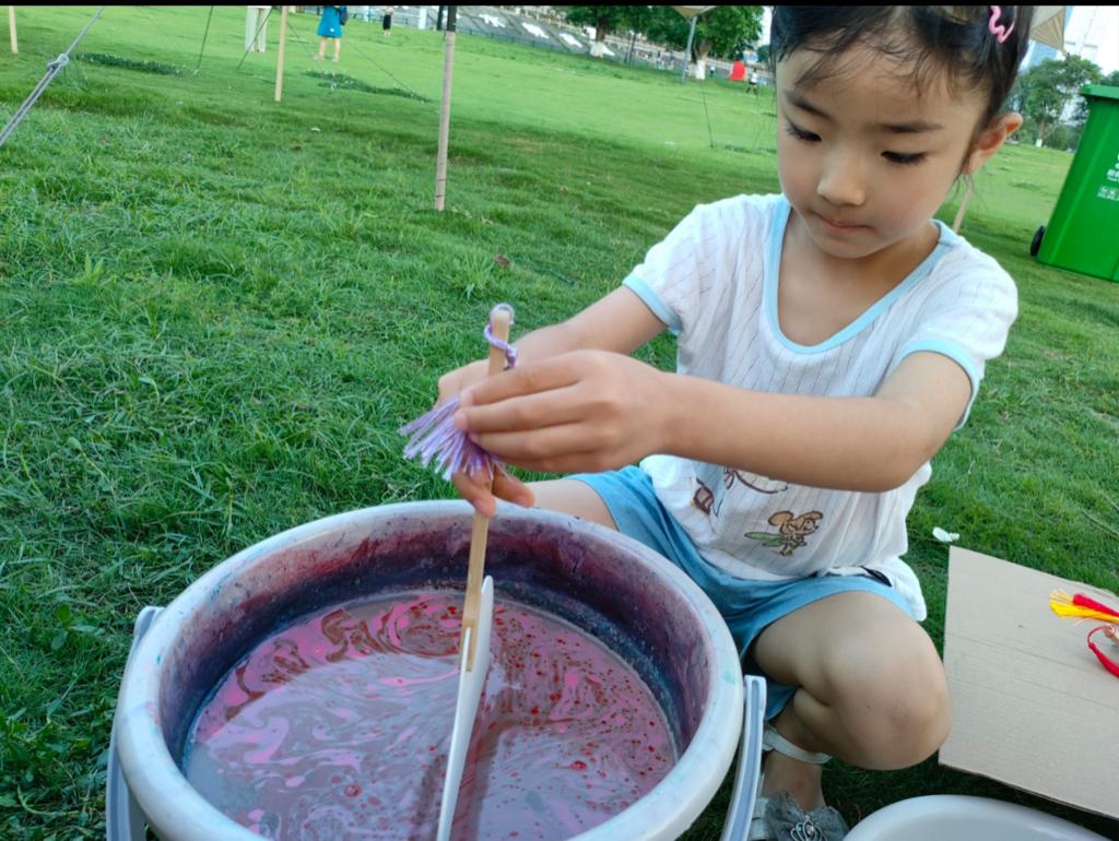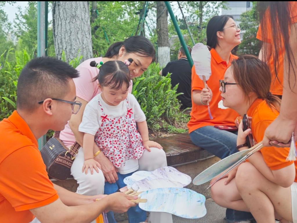 实践队队员们积极热情参与,为儿童、老年人和外国人等众多群体宣传讲解大漆漆扇相关知识,并指导他们亲手制作一把独一无二的漆扇。