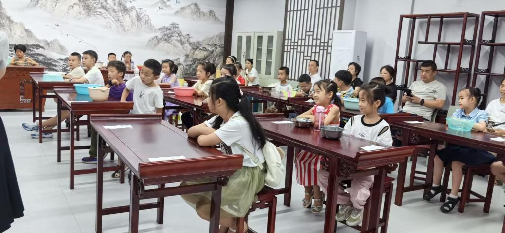 图为小朋友们专心听实践老师讲课