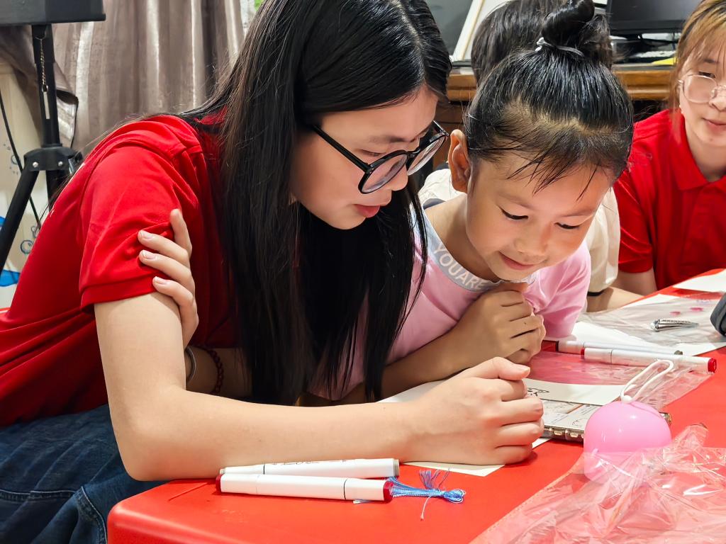 活动中,志愿者现场教学,从基础的小船、爱心到稍微复杂的千纸鹤、花卉,每一步都讲解得细致入微,让初学者也能够轻松上手。小朋友们在志愿者的指导下认真折叠,用心创作。作评完成后,小朋友们将自己的作品附上寄语,融入心中的思念与祝福,赠送给自己的亲朋好友。