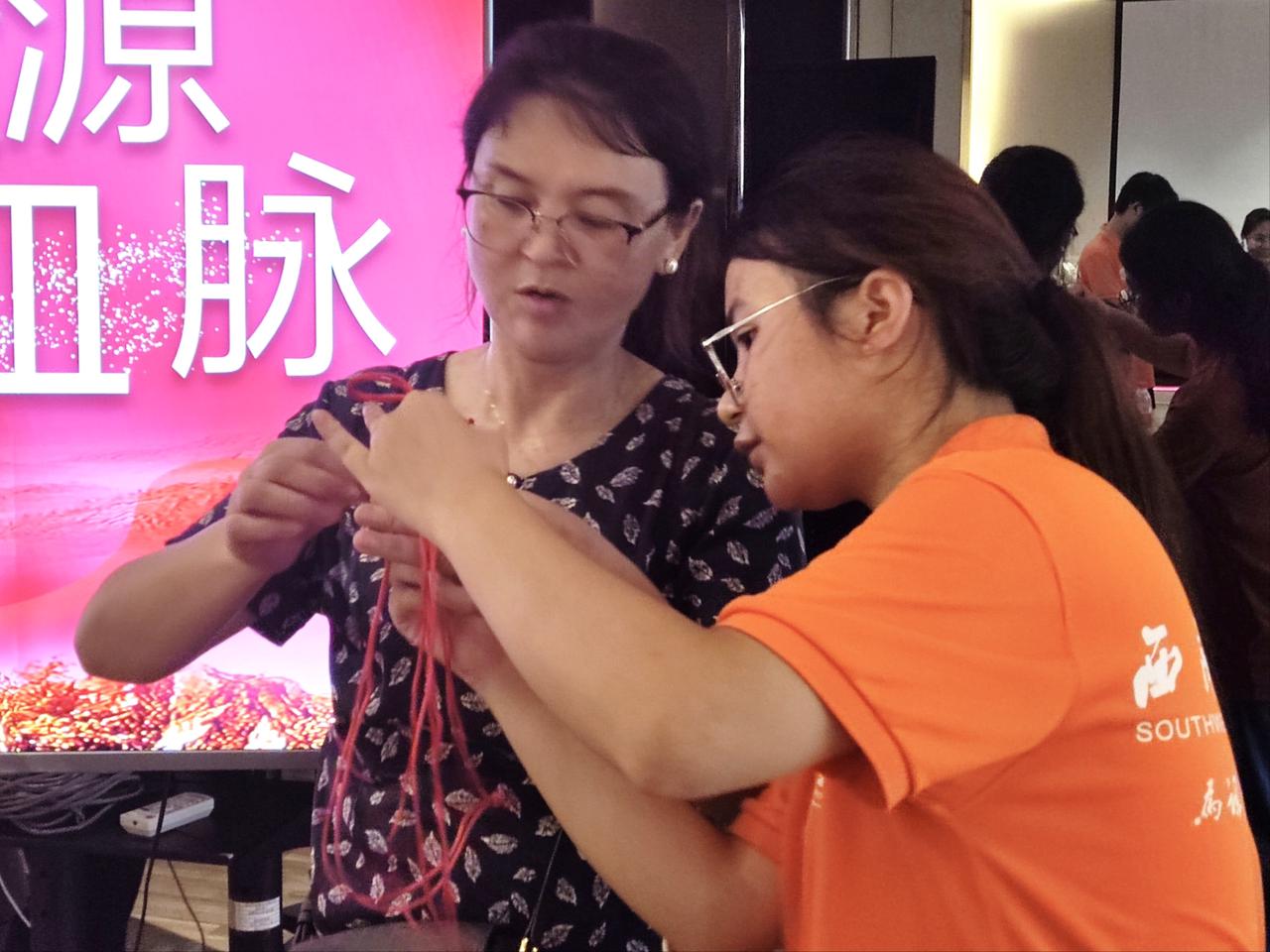 图为实践队员指导居民制作中国结