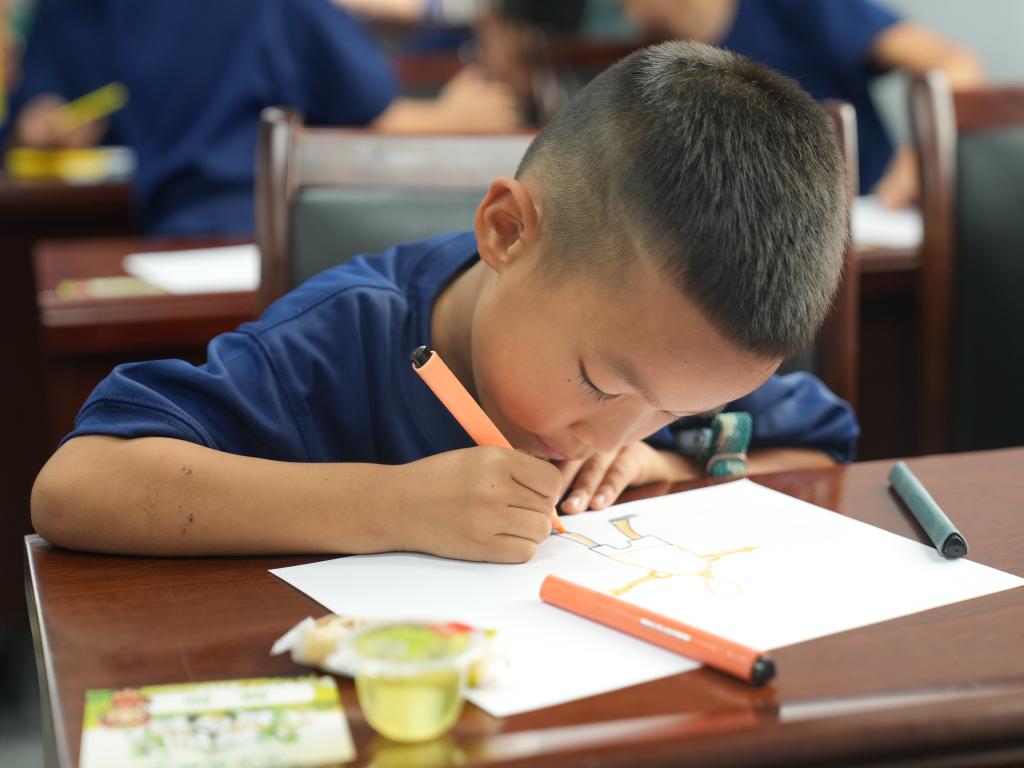 图为小朋友正在绘画“我心中的英雄”