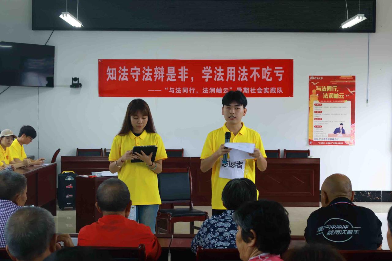 为进一步提升村民对法律的认识,经济管理学院“与法同行,法润岫云”暑期社会实践队于7月17日赴四川省广元市苍溪县岫云村开展普法节目表演活动,邀请当地村名前来观看。