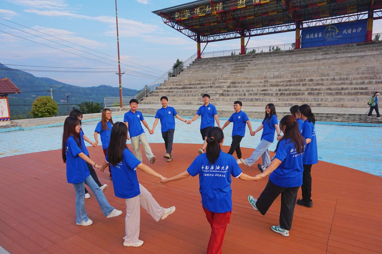 图为实践队员围成一圈跳舞