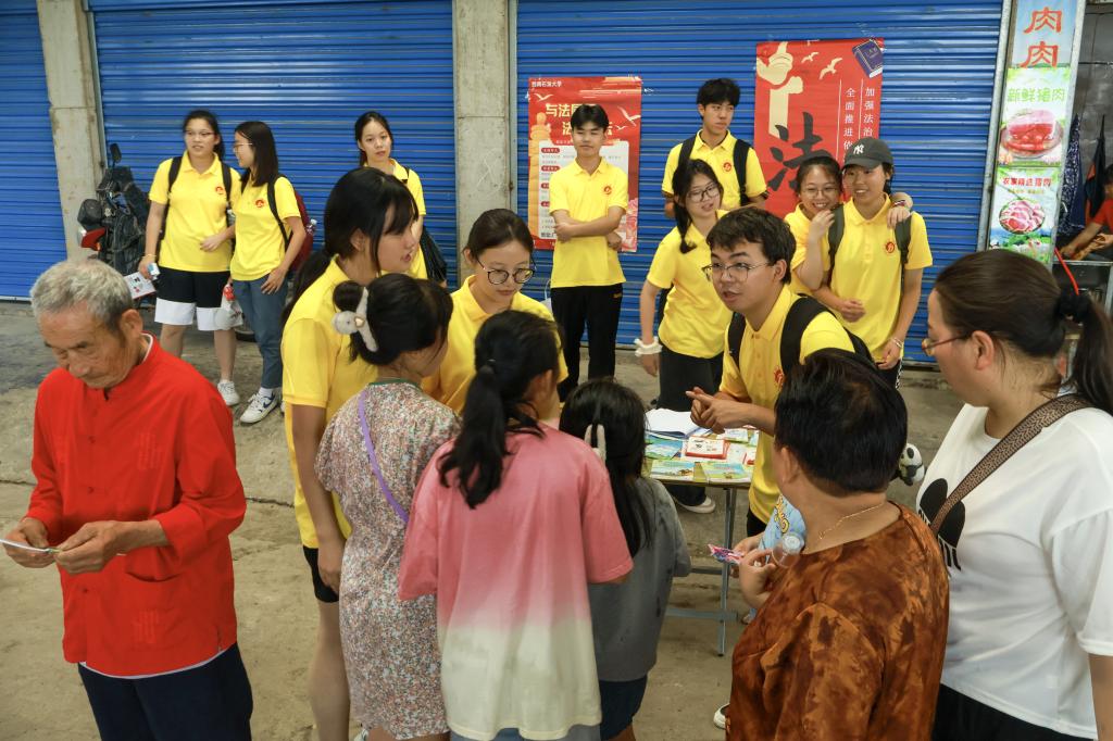 7月16日,为切实增强村民的法律意识,广泛普及法律知识,实践队员精心开展“普法集市”这一独具特色的活动。此次活动围绕《宪法》与《民法典》展开全面且深入的宣讲。此外,通过悬挂横幅、发放传单以及互动问答等形式,成功吸引众多村民积极参与,使得村民们对于国家的根本大法和重要民事法律有更为清晰明确的认识。