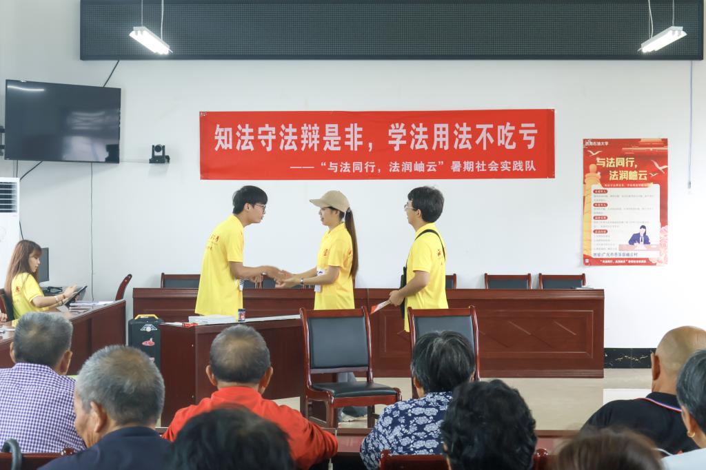 当然,普法之路并非一帆风顺。有些村民对法律的理解有限,需要我们耐心解释。有些案例需要我们深入调查,这锻炼了我们的分析和解决问题的能力。我们明白了法律不仅是书本上的条文,更是解决实际问题的工具。每个案例都需要我们深入分析,理解法律精神,结合实际情况进行解读。为了更好地将法律的种子在村民的心中埋下,我们特地编排了几个小品,诙谐幽默的表演逗得村里的爷爷奶奶哈哈大笑,同时我们也对小品中涉及的法律知识进行讲解,让村民对法律有了更为深刻的认知。