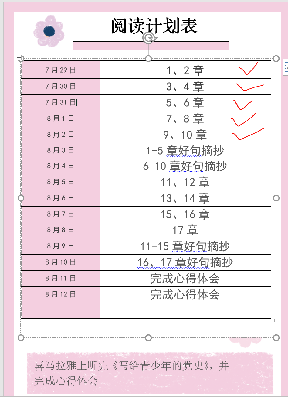 图为学生的阅读计划