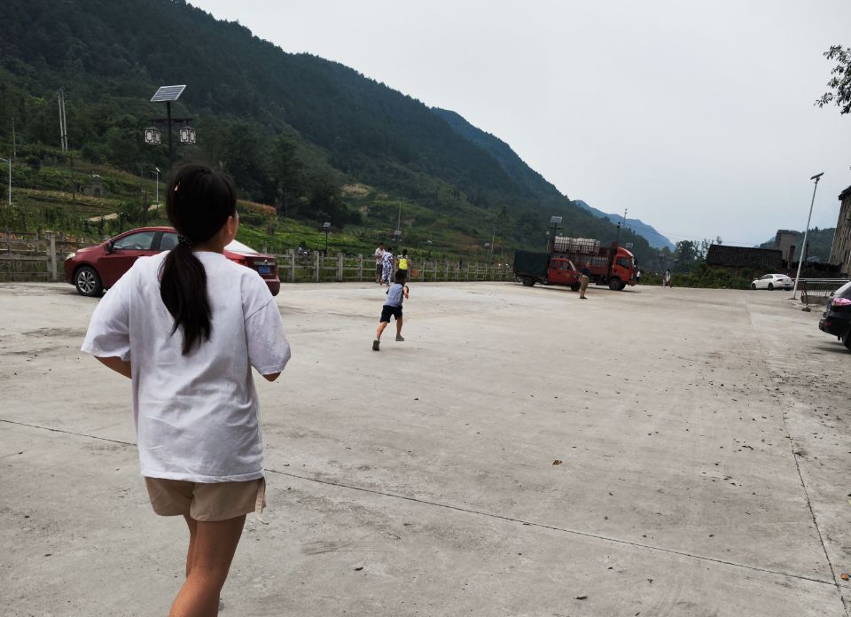 图为志愿者与小朋友一起户外运动