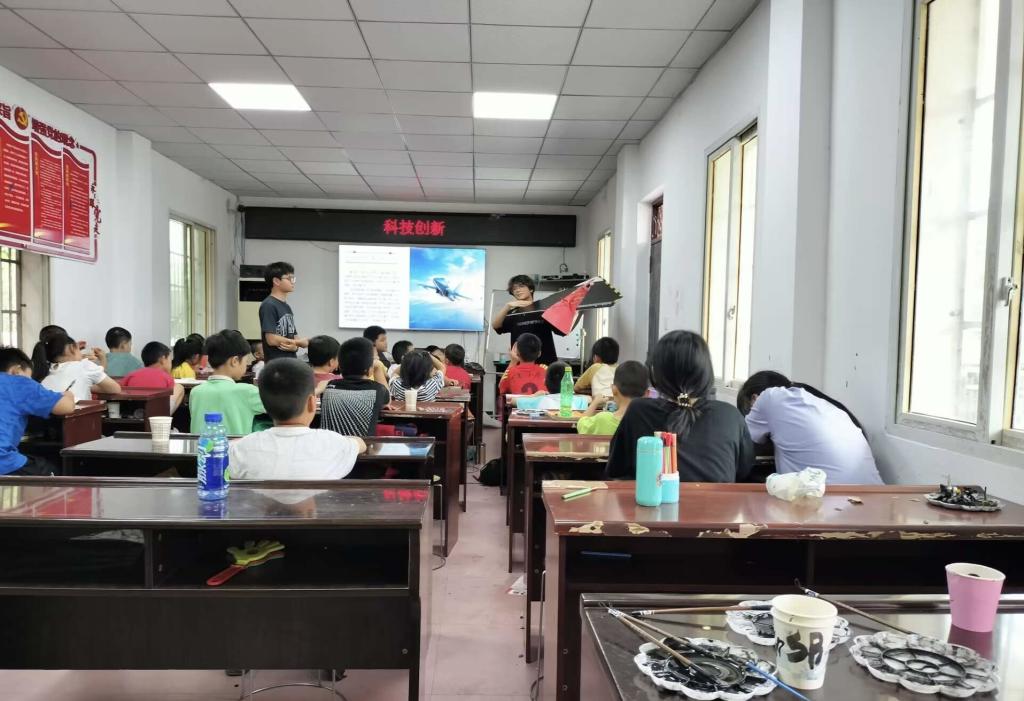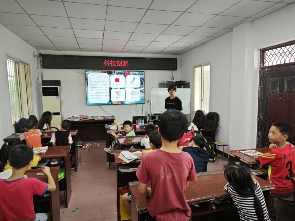 活动当天,实践队队员们分工有序,首先进行了科普教具准备和模拟授课,包括航天模型、飞行器模型等。接着,早上8点孩子们到达教室后,队员们开始了今天的课程,课程分为:航空航天飞行器,飞行原理等相关知识讲解,观摩飞行器知识与现场工作相关视频。最后,讲解小型飞行器模型的具体结构、制作过程和飞行要素等。过程中,孩子们积极互动,充满好奇,收获满满。