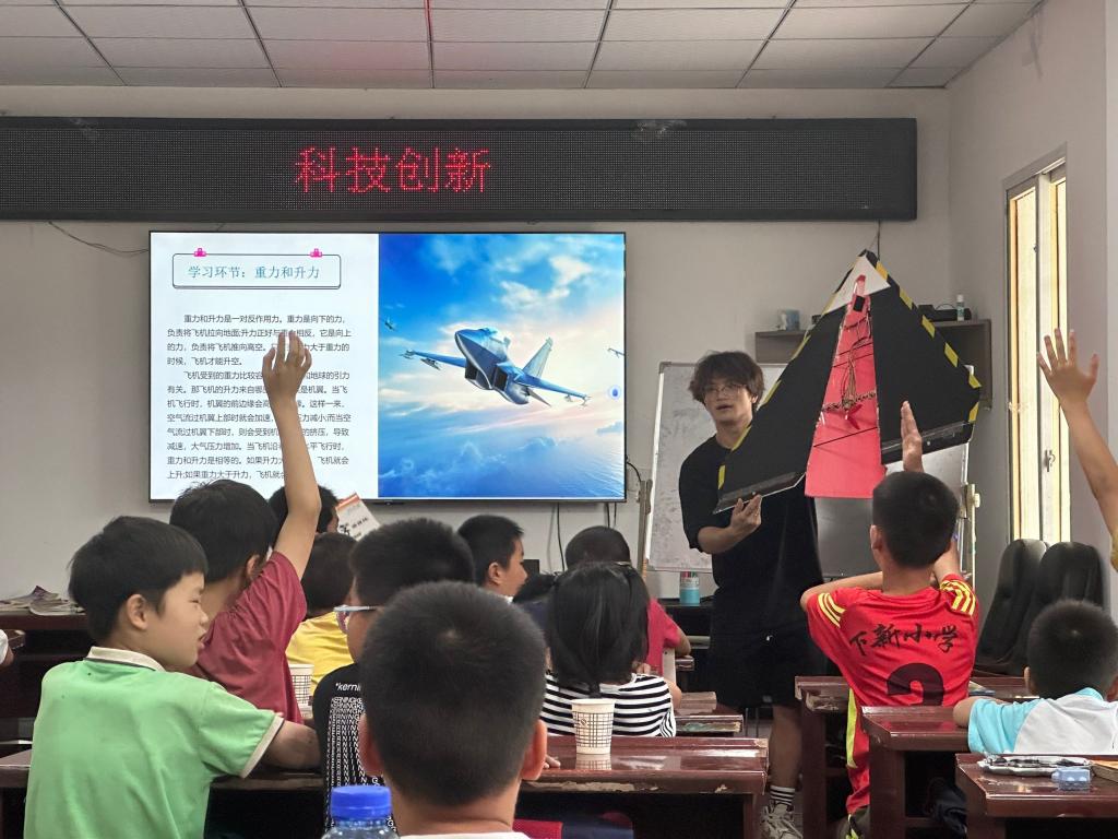 志愿者首先向小朋友们传授理论知识,包括飞机起飞的原理等。然后通过飞行器模型展示各个部件的功能,包括推进系统,操作系统,机体,起落装置等。接着,志愿者们带领孩子们到开阔的地方进行实地飞行演示,让他们亲眼见到飞行器升空,感受飞行的魅力。通过这一系列的活动,孩子们不仅学到了关于飞行器的知识,还拓展了视野,了解到飞行器在人类生活和社会发展中的重要作用。他们表现出了对探索和创新的热情,也许这些体验会启发他们对未来科技的思考和向往。此外,在观察和了解飞行器的过程中,他们的观察力和思考能力也得到了提升。