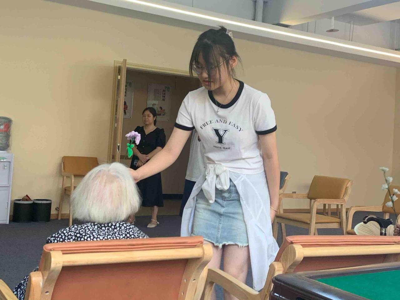 “孩子们,你们来了真好,感觉家里热闹多了!”一位满头银发的老奶奶拉着志愿者的手,眼中闪烁着感激的泪光。她告诉志愿者们,自己平时最期待的就是有人能陪她说说话,听听她的过去和故事。而今天,这些年轻的面孔和温暖的话语,让她感受到了久违的亲情与温暖。