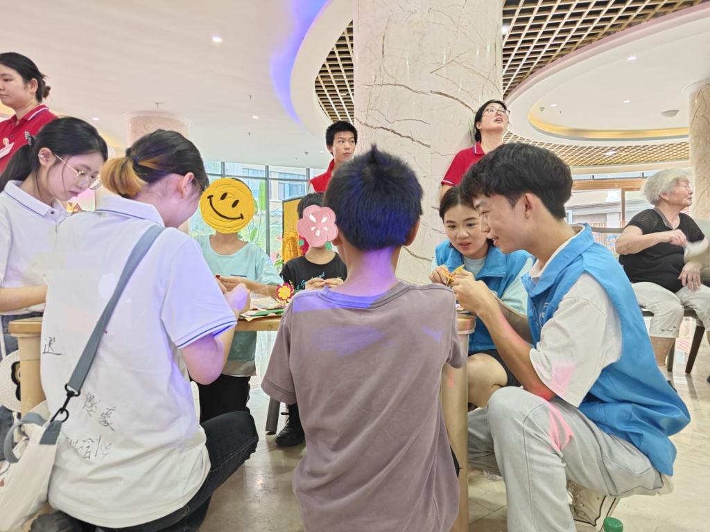 志愿者带领小朋友做手工