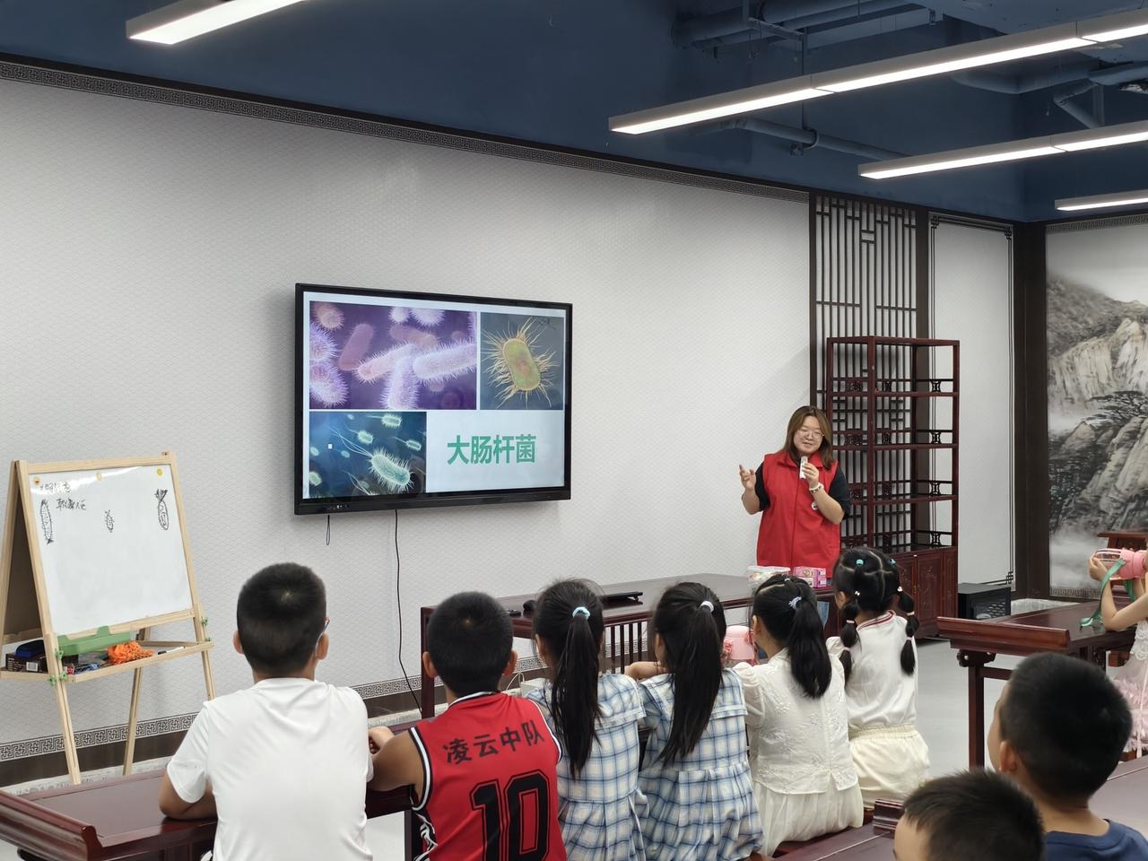 志愿者向小朋友们讲解大肠杆菌相关知识
