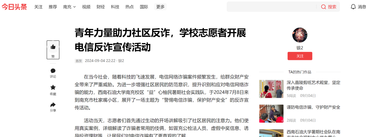 图为实践队在今日头条官方平台上发文