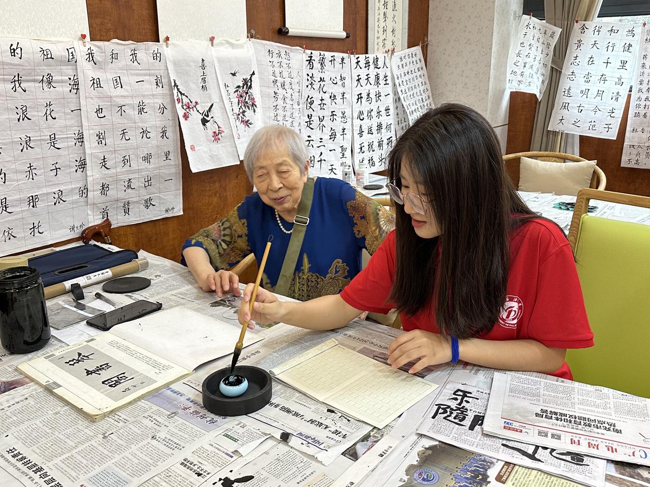 图为实践队员在南充市社会福利中心陪伴老人