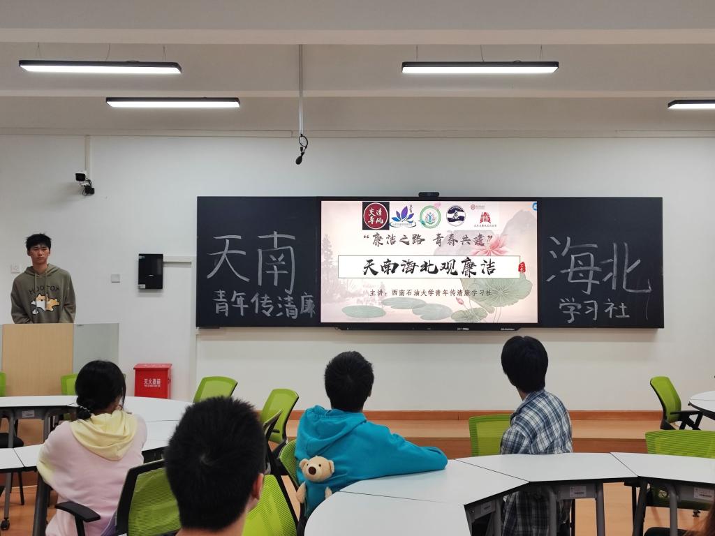 为在学生中大力弘扬廉洁精神,10月13日,校区青年传清廉学习社在第四教学楼208教室举办了第二期“天南海北观廉洁”活动。