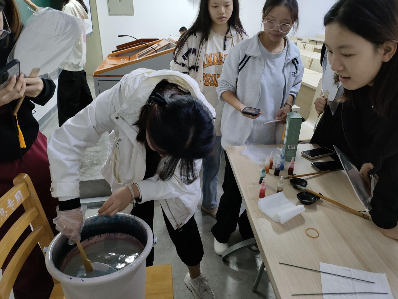 10月25日,校区社团联兰亭墨本书画协会在第四教学楼214教室开展了“扇舞丹青”漆扇手作特色活动,共计30人参与。
