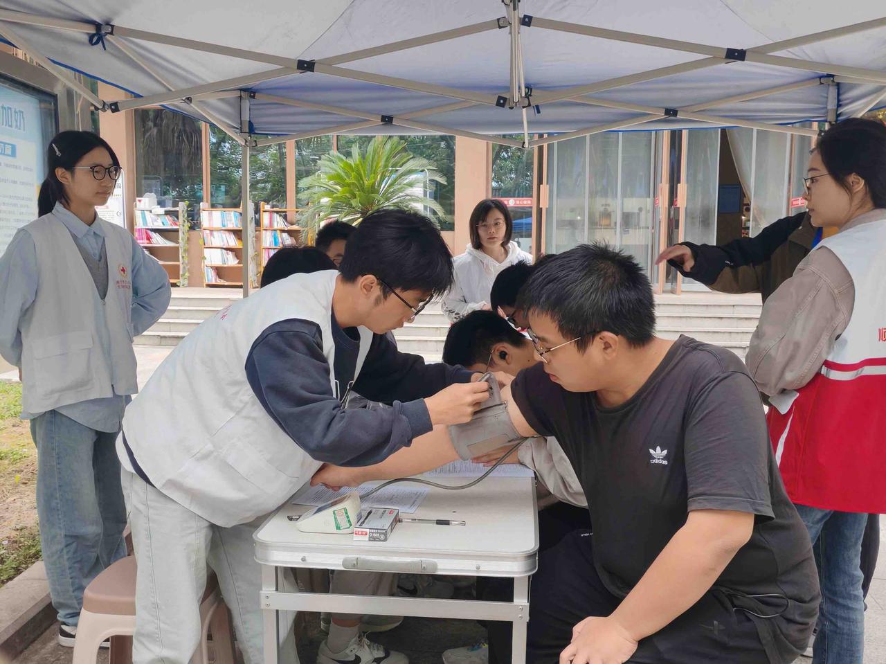 图为志愿者帮忙测血压