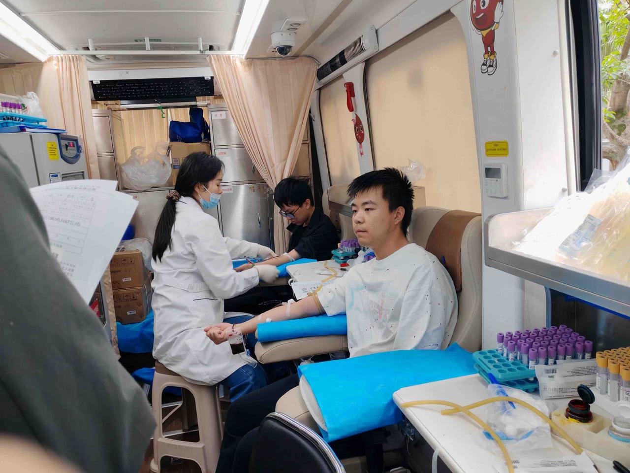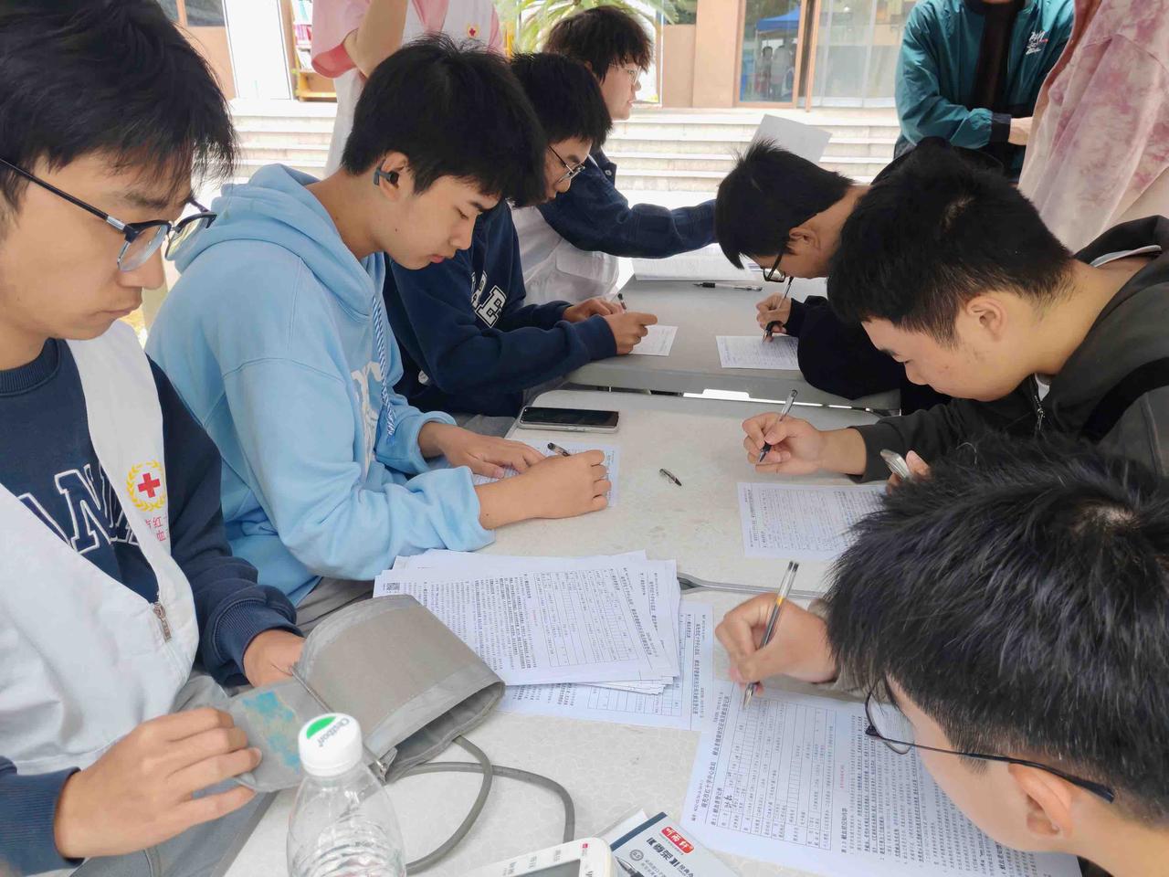 图为同学们正在献血