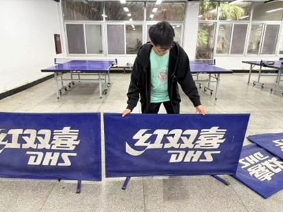在活动中,协会成员井然有序地开展擦拭球桌、清扫地面、张贴海报等工作,每位同学各尽其责,只为打造一个舒适、整洁的运动环境。历经数个小时的打扫,乒乓球室焕然一新,球室内张贴了彰显乒乓球文化的海报,这将极大地激发同学们对于乒乓球的热爱与对运动精神的追求。