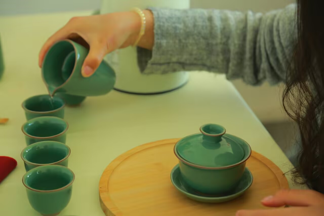 图为同学品茶