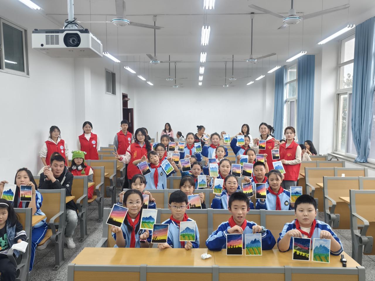 此次课堂主题为“童心绘非遗,刀画传文化”,来自西华师范大学“逐梦刀画”协会的同学以生动有趣的讲解,引领着孩子们一步步探索刀画的神奇魅力。小朋友们全神贯注,热情高涨,整个课堂氛围十分活跃。而后,电信院志愿者们亲身示范,带领小朋友们一起创作并鼓励孩子们勇于想象、大胆刻画。课堂最后,孩子们也借由手中的画笔描绘出了那份属于自己的“艺术”画卷。