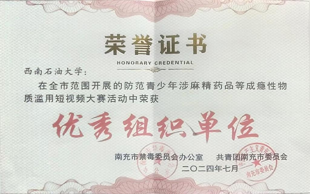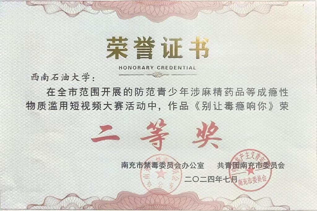 近日,南充市禁毒委员会办公室、共青团南充市委员会主办的防范青少年涉麻精药品等成瘾性物质滥用短视频征集活动评选结果揭晓,校区学生作品在此次活动中取得了二等奖一项、三等奖一项,校区获得优秀组织单位,体现了校区在防范青少年涉麻精药品等成瘾性物质滥用宣传工作方面取得了一定的成效。