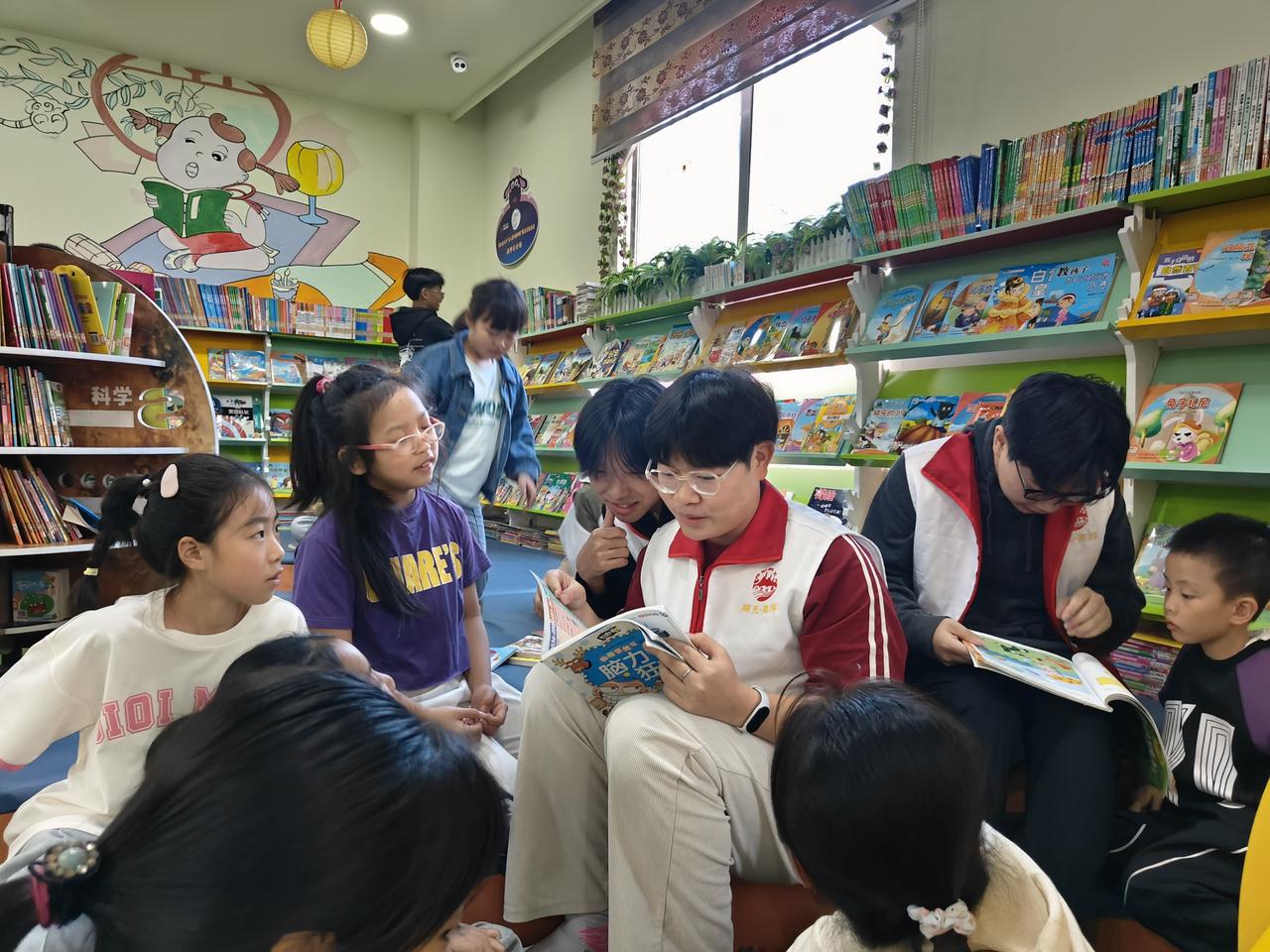 活动主要分为卫生清洁与儿童宣讲两部分。支部成员被分配到不同区域,对散放和排列不整齐的图书进行分类整理和编号排列。在工作人员的帮助下,成员们仔细摆放好桌椅并清洁了窗户玻璃,为广大市民营造出一个宽敞明亮、整洁舒适的图书馆环境。随后,支部成员来到儿童阅览室,用生动有趣的语言和形象的图片,向小朋友们介绍了书籍的魅力、阅读的重要性以及如何养成良好的阅读习惯。小朋友们仔细聆听,现场气氛热烈融洽。
